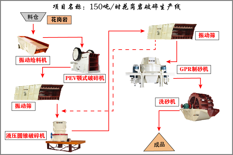 【案例分享】150噸/時(shí)花崗巖破碎生產(chǎn)線方案