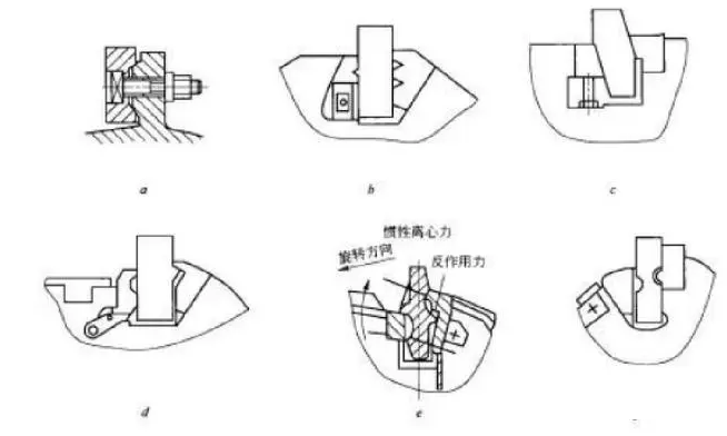 A 螺栓緊固法:板錘借助螺栓緊固于轉(zhuǎn)子的板錘座上。板錘座帶榫【sǔn】狀,可以利用榫口承受工作時(shí)板錘的沖擊力,避免螺栓受剪,提高螺栓連接的可靠性;