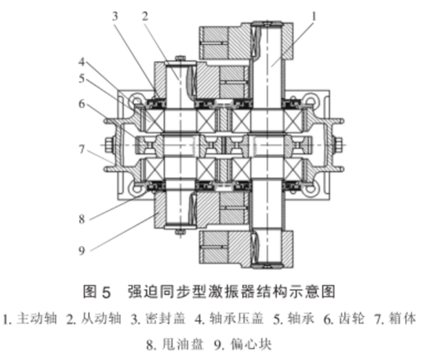 (2)采用1對(duì)大螺旋角斜齒輪傳動(dòng),可嚴(yán)格保證主、從動(dòng)軸上偏心塊的同步性,承載能力強(qiáng)、激振力大、運(yùn)轉(zhuǎn)平穩(wěn),噪聲低;