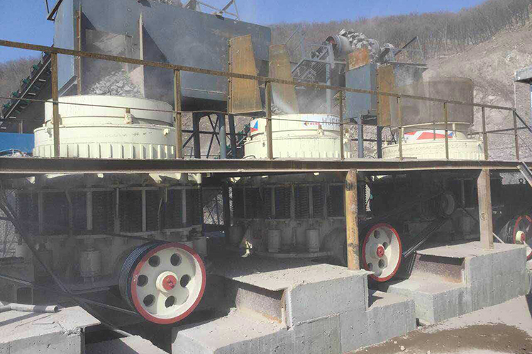 3、粗破后的物料在被送入HJC1680+HJC1500共四臺(tái)彈簧圓錐破碎機(jī)進(jìn)行二段三段破碎;