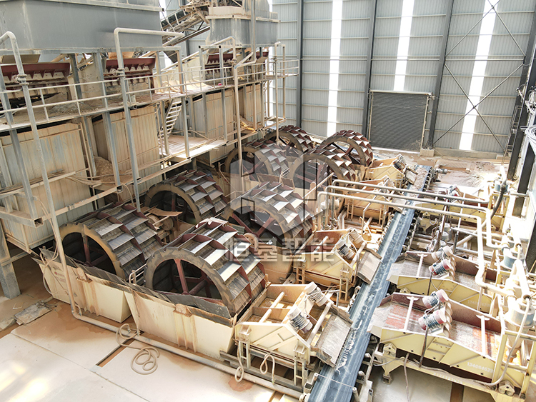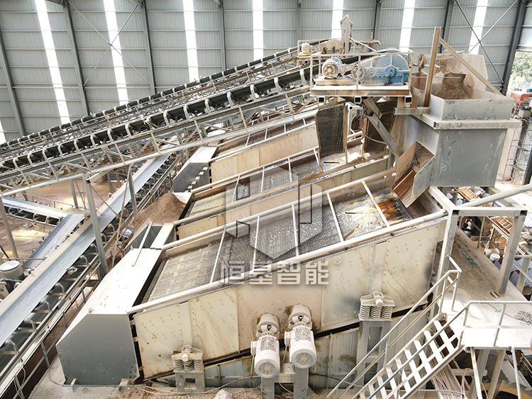 然后,制砂機進行破碎,送回振動篩分離,分離的石子一部分進入經(jīng)洗砂機和脫水篩出成品料,另一部分送到制砂機;