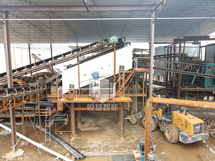 最后,制砂機(jī)輸出得物料送入振動(dòng)篩進(jìn)行分離,物料分離后送入洗砂機(jī),脫水篩等曬出成品砂。