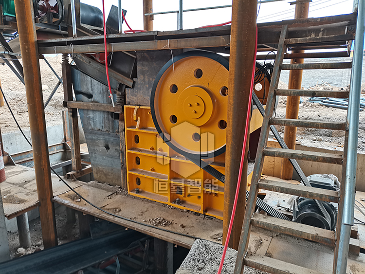 首先,石料在振動(dòng)給料機(jī)的作用下,被均勻、連續(xù)的送進(jìn)顎式破碎機(jī)進(jìn)行初步破碎;