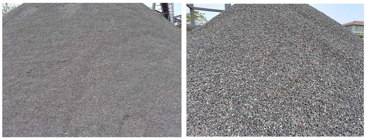 本項目恒基采用雙頭破設計,滿足用戶應對含泥量不同的原料,一臺鄂破配備洗石機,處理含泥量重的原料,減輕圓錐破碎機負載,并配備雙料倉,使主破碎設備達到產(chǎn)能最大化,損耗降低的效果。洗沙部分采用螺旋洗沙機和葉輪洗沙機搭配,先入螺旋洗沙機使泥砂分離,后入葉輪洗沙機,減低細沙流失率,降低細砂回收一體機的負載,洗出的成品砂含泥量低,粒型好看。