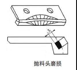 拋料面磨損部位呈現(xiàn)中心對(duì)稱圓弧形磨損凹陷。耐磨嵌塊磨損后剩余量<3mm時(shí),需及時(shí)更換。